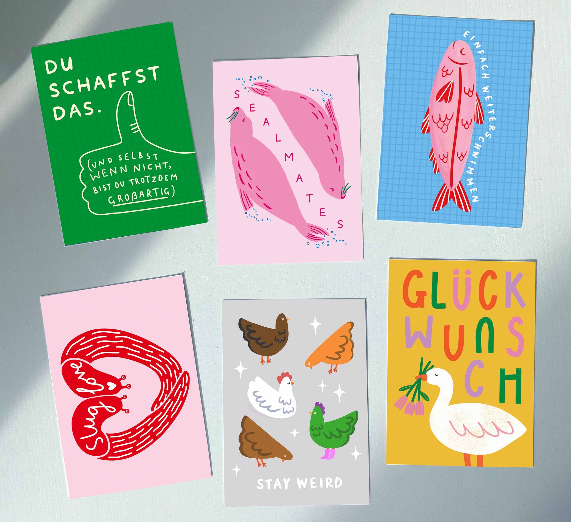 Show your loved ones how you feel with sweet messages of encouragement, birthday greetings and cute, romantic gestures. This postcard set is all about reaching out and sharing kind words. Perfect for gifts, for sending snail mail, or for a typical rainy Monday!